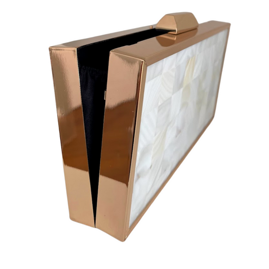 Bolsa de Festa Clutch Metalizada Madrepérola Branca