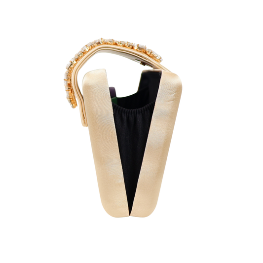 Bolsa Clutch Festa Cetim e Fecho de Pedraria Dourado Claro
