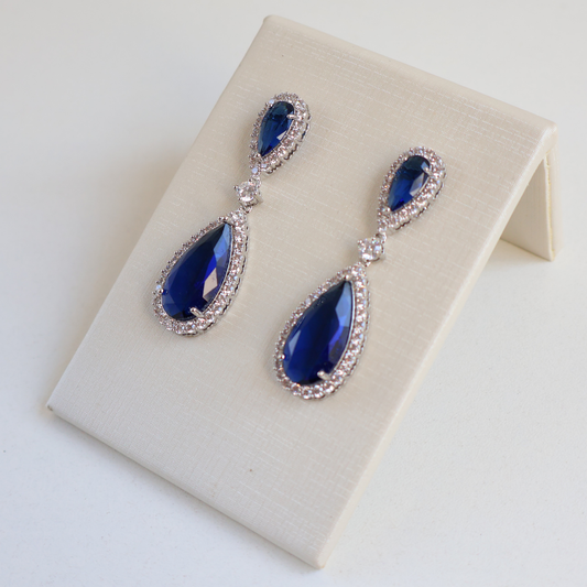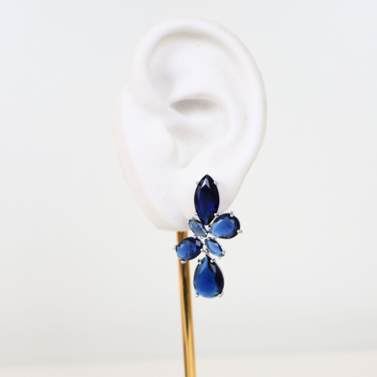 Kit Brinco e Colar - Prateado e Cristal Azul Turquesa - Semijoia