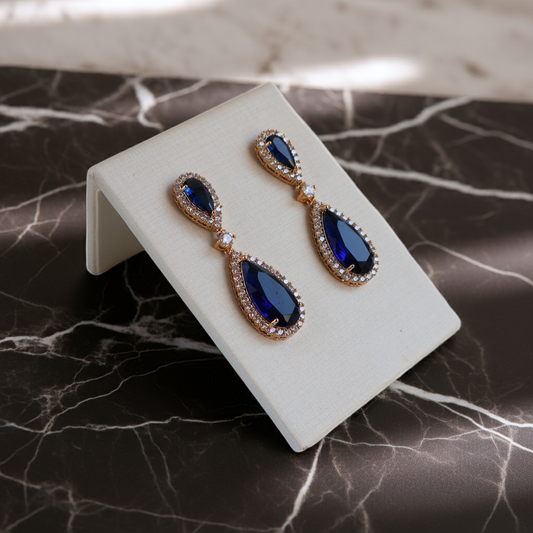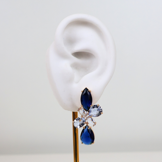 Kit Colar e Brinco - Cristal Azul - Dourado