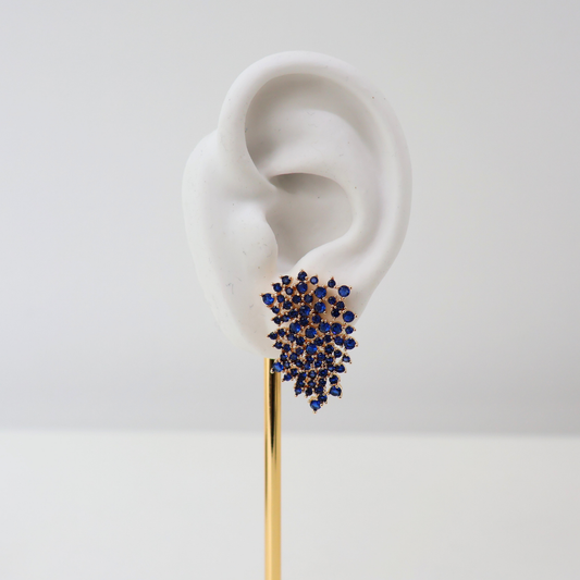Brinco Dourado e Cristal Azul e Rosa - Semijoia