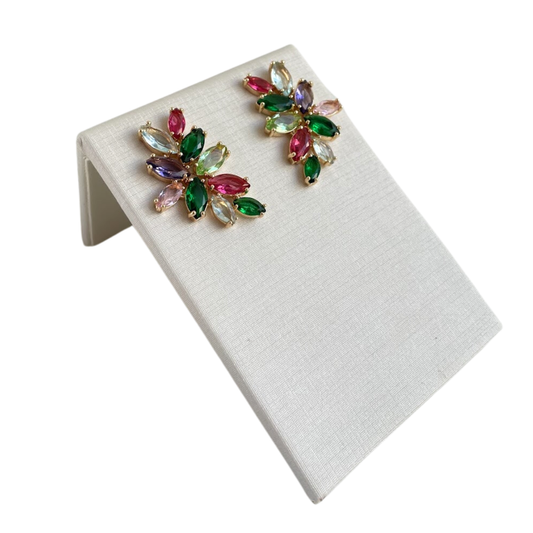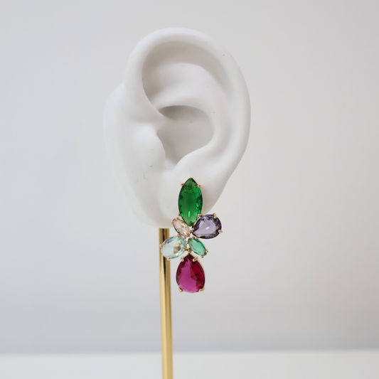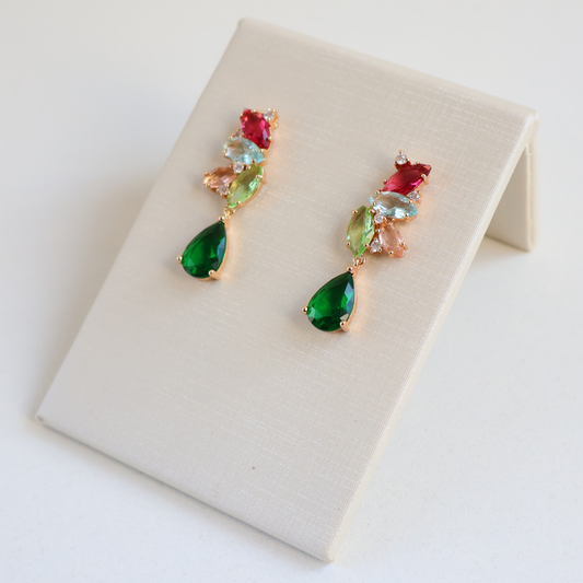 Brinco Dourado e Cristal Verde e Colorido - Semijoia