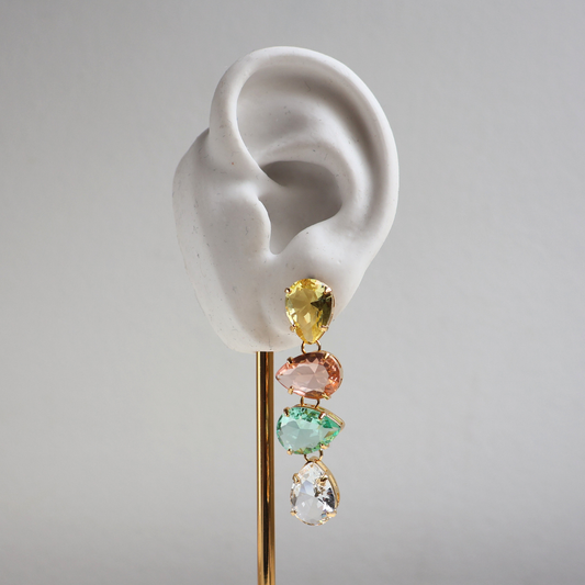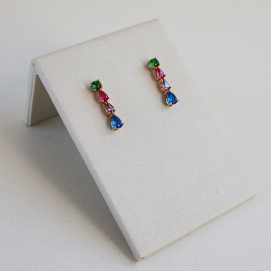 Brinco Dourado e Cristais Coloridos - Semijoia