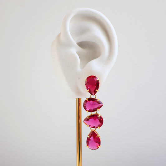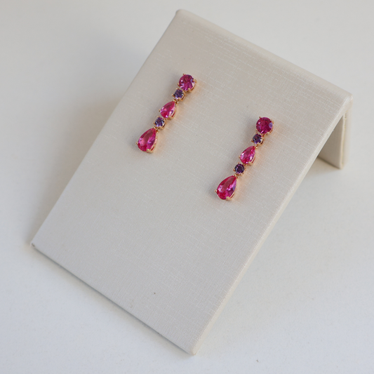Brinco Dourado e Cristal Fúcsia - Semijoia