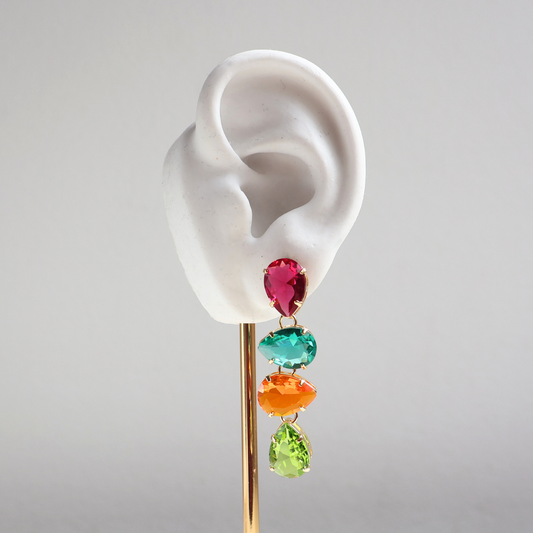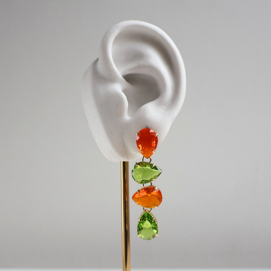 Brinco Dourado e Cristal Verde e Laranja - Semijoia