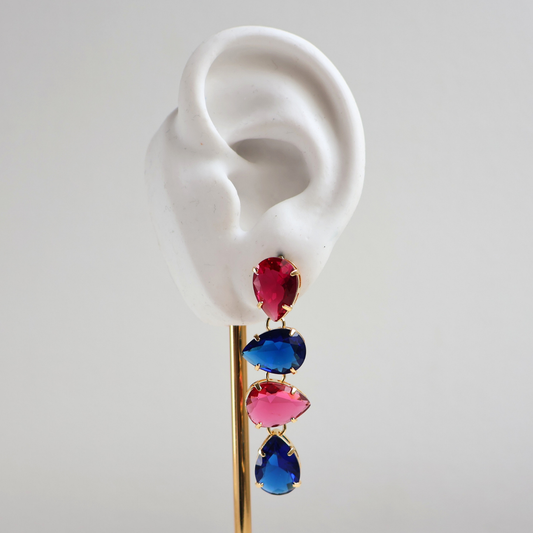 Brinco Dourado e Cristal Azul e Rosa - Semijoia