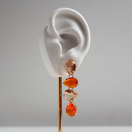 Brinco Dourado e Cristal Laranja e Champagne - Semijoia