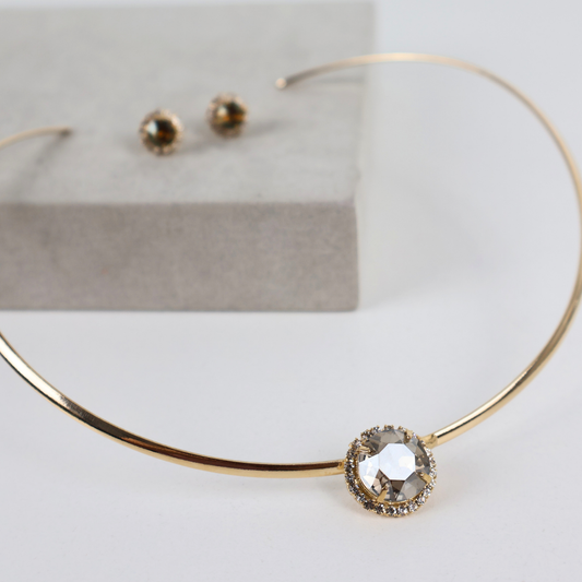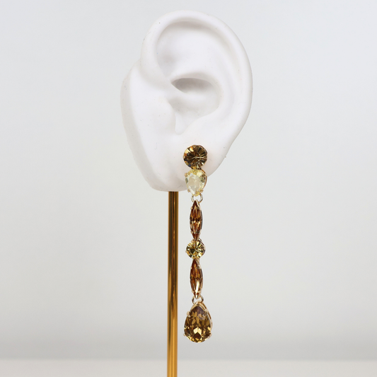 Brinco Dourado e Cristal Champagne - Semijoia
