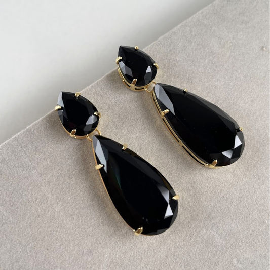 Brinco - Dourado e Cristal Preto - Semijoia