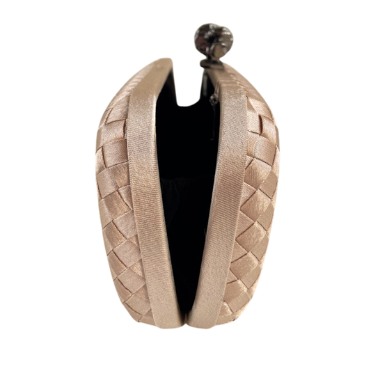 Clutch Tressê Cetim Inspired Pequena Bege Bronze