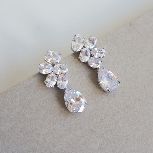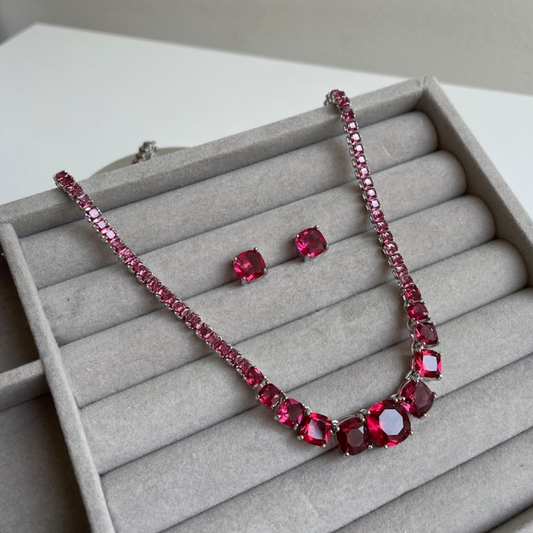 Kit Brinco e Colar - Prateado e Cristal Marsala - Semijoia