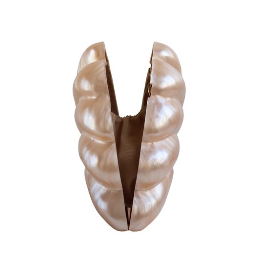 Bolsa de Festa Clutch Acrílico Perolado Concha Bege Champagne