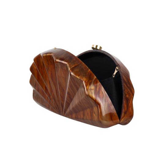 Bolsa de Festa Clutch Acrílico Perolado Meia Lua Marrom