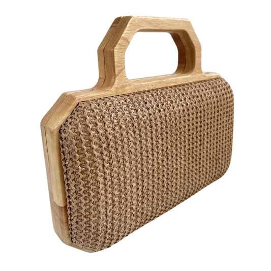 Bolsa de Festa Clutch Madeira e Palha Bege Escuro
