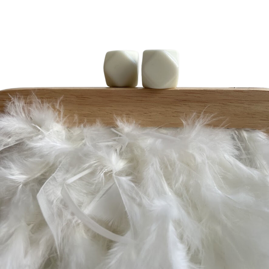 Bolsa de Festa Clutch Madeira e Plumas Sintéticas Branca