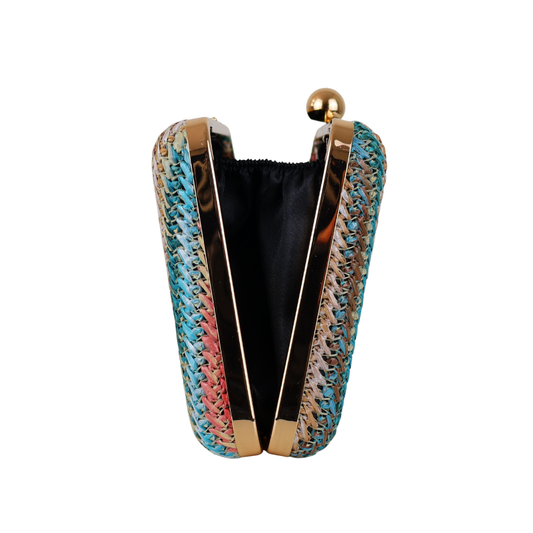 Bolsa Festa Clutch Pedraria Colorida Oval Ferragem Dourada