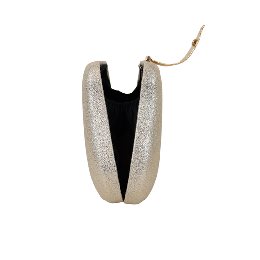 Bolsa de Festa Clutch Concha em Cetim Dourado e Cristais Champagne