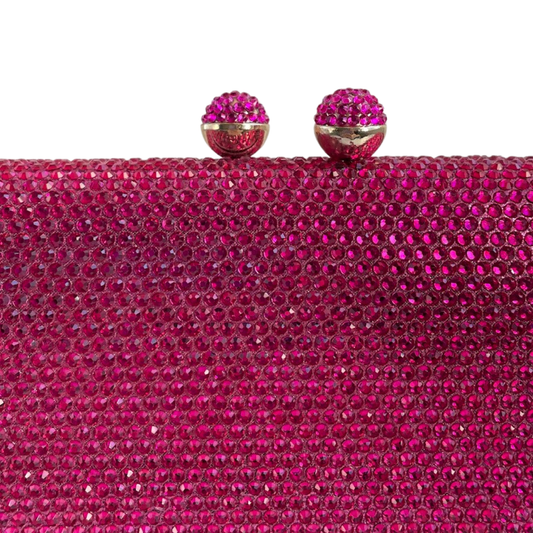 Bolsa de Festa Clutch Cristais Pedraria Rosa Escuro
