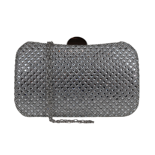 Bolsa de Festa Clutch Cristais Pedraria Prateada