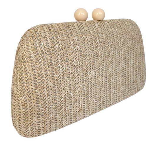Bolsa de Festa Clutch Madeira e Palha Bege