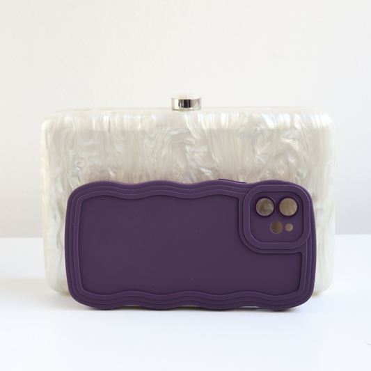 Bolsa de Festa Clutch Acrílico Perolado Meia Lua Branca