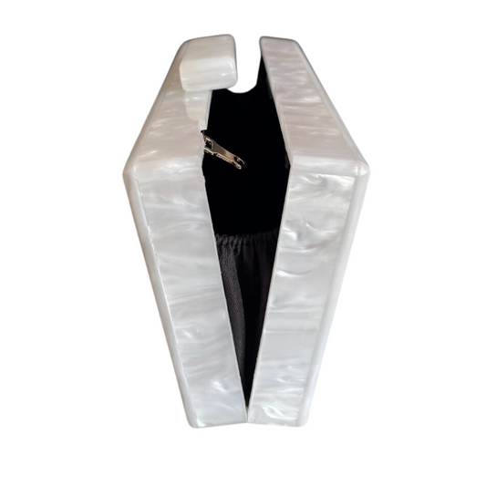 Bolsa de Festa Clutch Acrílico e Metal Branco Perolada