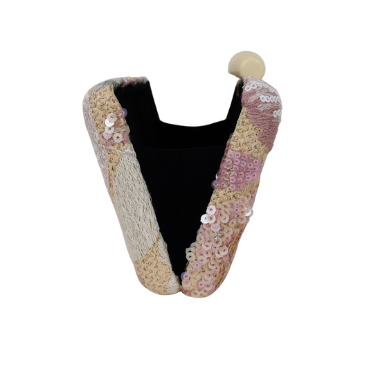 Bolsa Clutch Festa Lantejoulas Bordadas Flores Rosa Claro