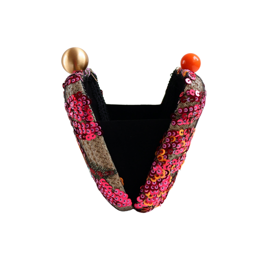 Bolsa Clutch Festa Lantejoulas Bordadas Flores Laranja e Verde