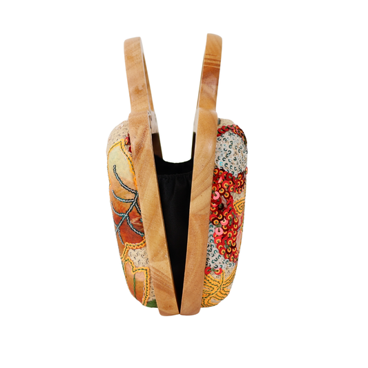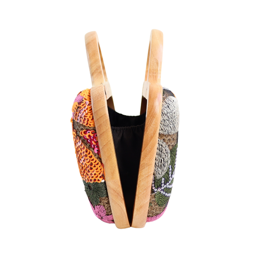 Bolsa de Mão Festa Palha Madeira Bordada Laranja