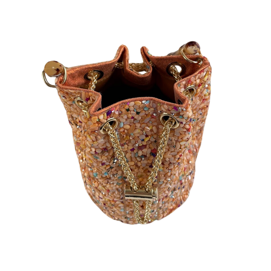 Bolsa Festa Clutch Pedraria Strass Laranja Marrom Âmbar