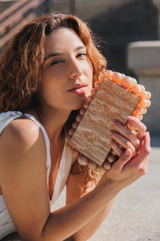 Bolsa de Festa Clutch Acrílico Bolas Marrom