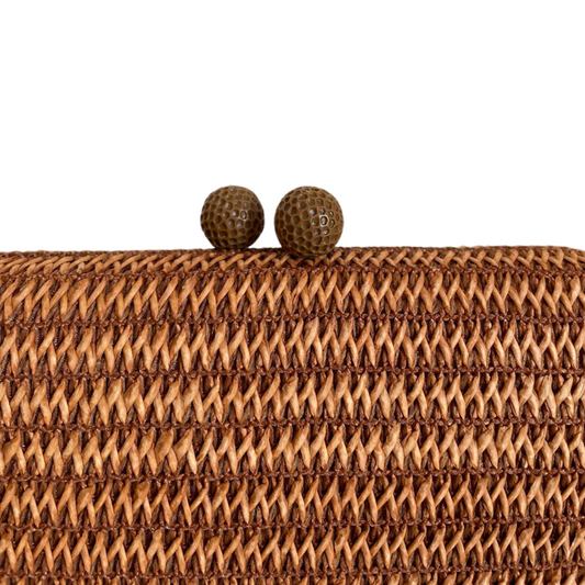 Bolsa Festa Clutch Oval Acrílico e Palha da Índia Marrom