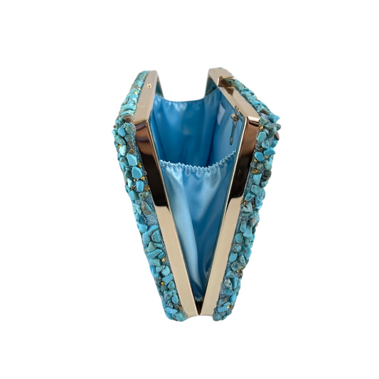 Bolsa de Festa Clutch Pedraria Azul Turquesa