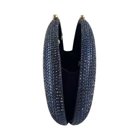 Bolsa Festa Clutch Pedraria Strass Oval Azul Marinho