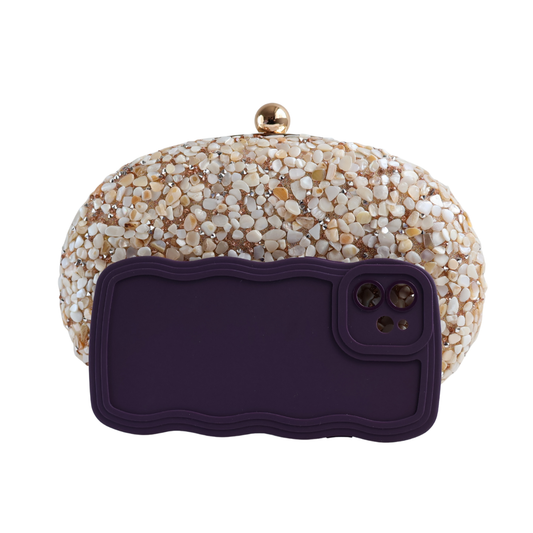 Bolsa Carteira de Festa Clutch Pedraria Roxa