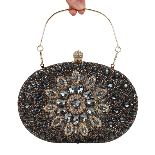 Bolsa de Festa Clutch Pedraria Cristal Grafite