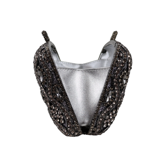 Bolsa Festa Clutch Pedraria Strass Prata Grafite