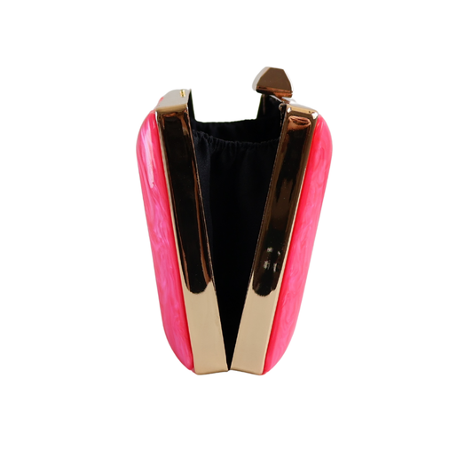 Bolsa de Festa Clutch Metal e Acrílico Rosa