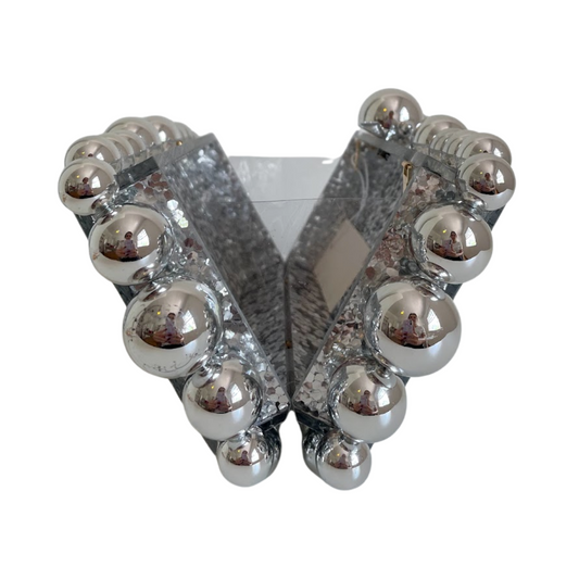 Bolsa de Festa Clutch Acrílico Bolas Brilhantes Prateada - ReUse