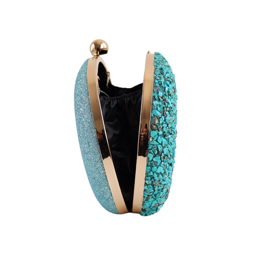 Bolsa Festa Clutch Pedraria Oval Azul Turquesa - ReUse