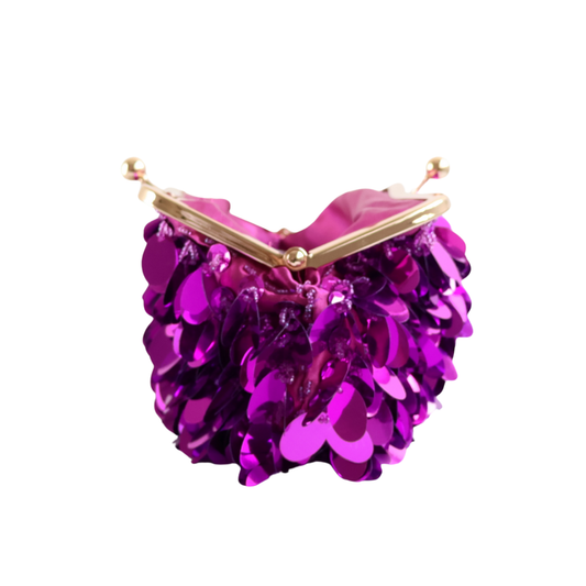Bolsa de Festa Clutch Lantejoula Folha Brilhante Roxa - ReUse