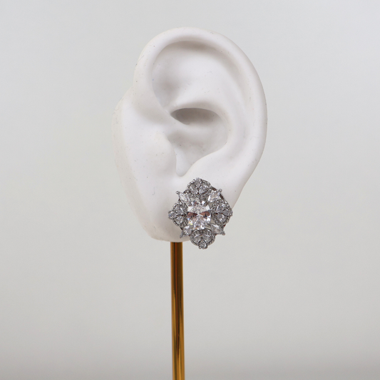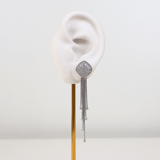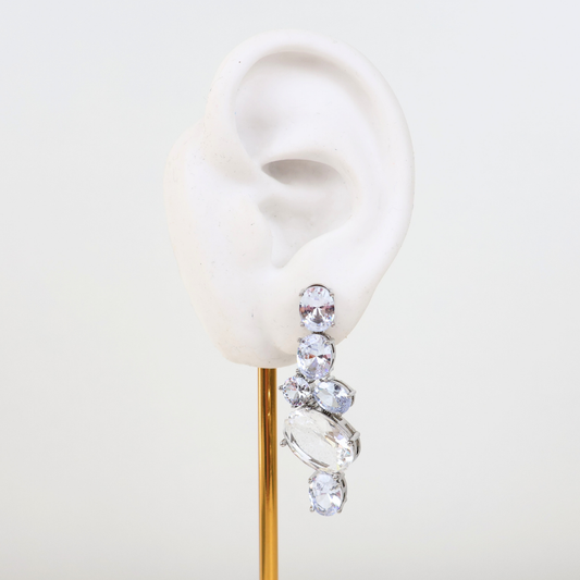 Brinco Prateado e Cristal Translúcido - Semijoia