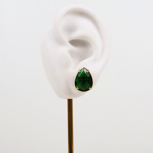 Brinco Earcuff Dourado e Cristal Verde - Semijoia
