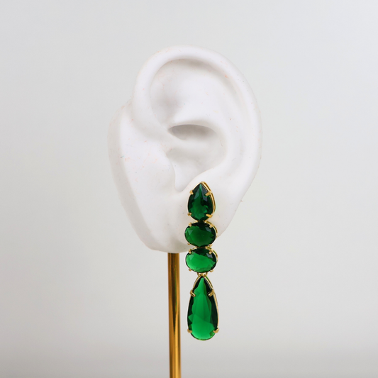 Brinco Dourado e Cristal Verde e Colorido - Semijoia