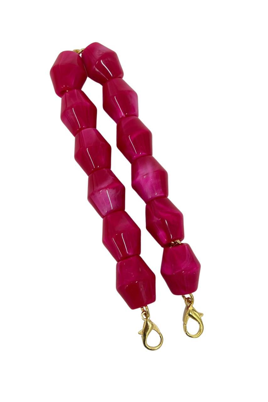 Alça de Mão - Metal Dourado - Perolada Fúcsia