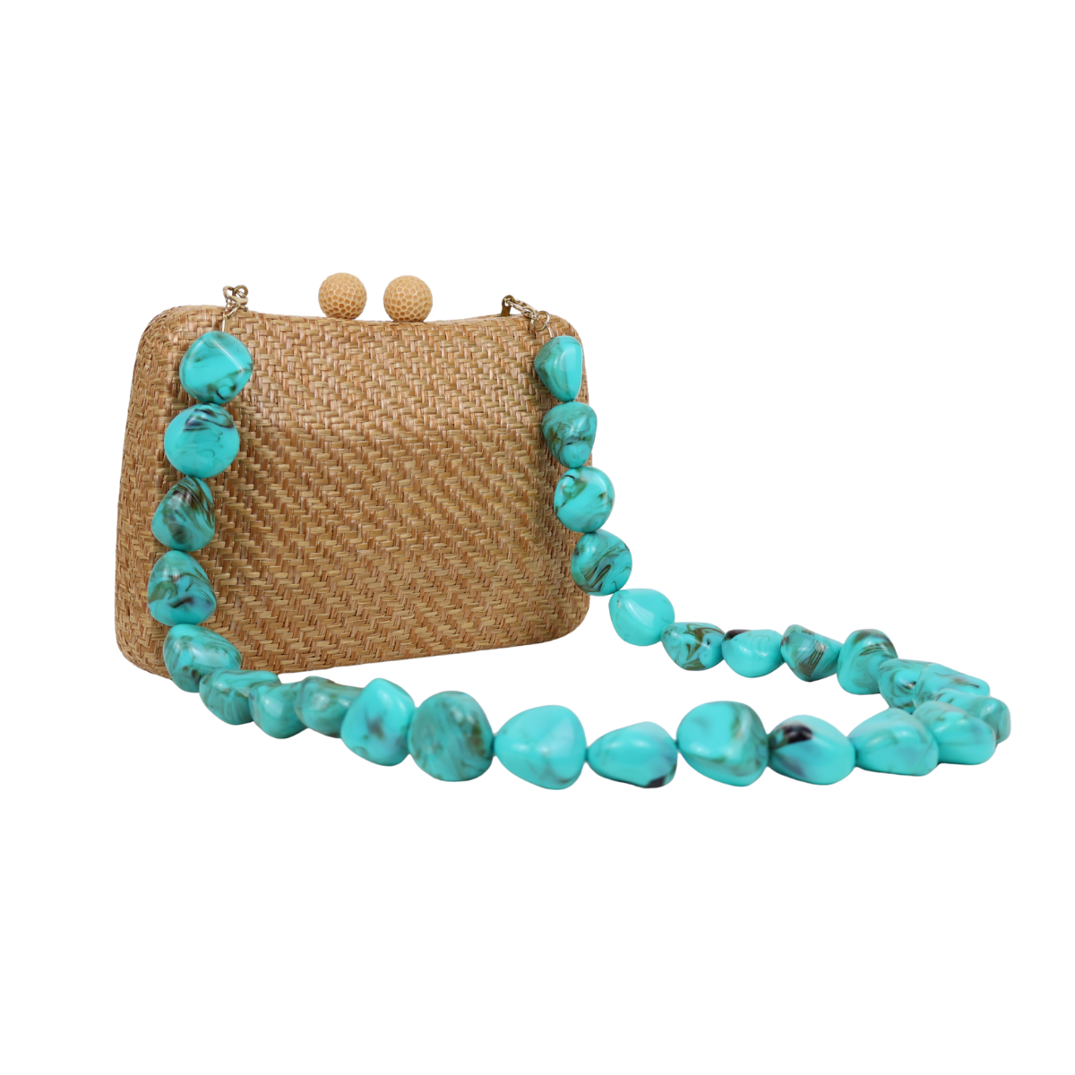 Bolsa Festa Clutch Pedraria Azul Turquesa Oval