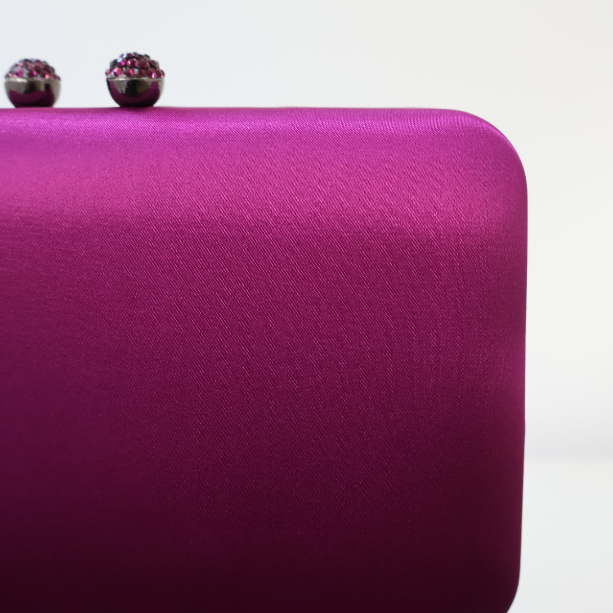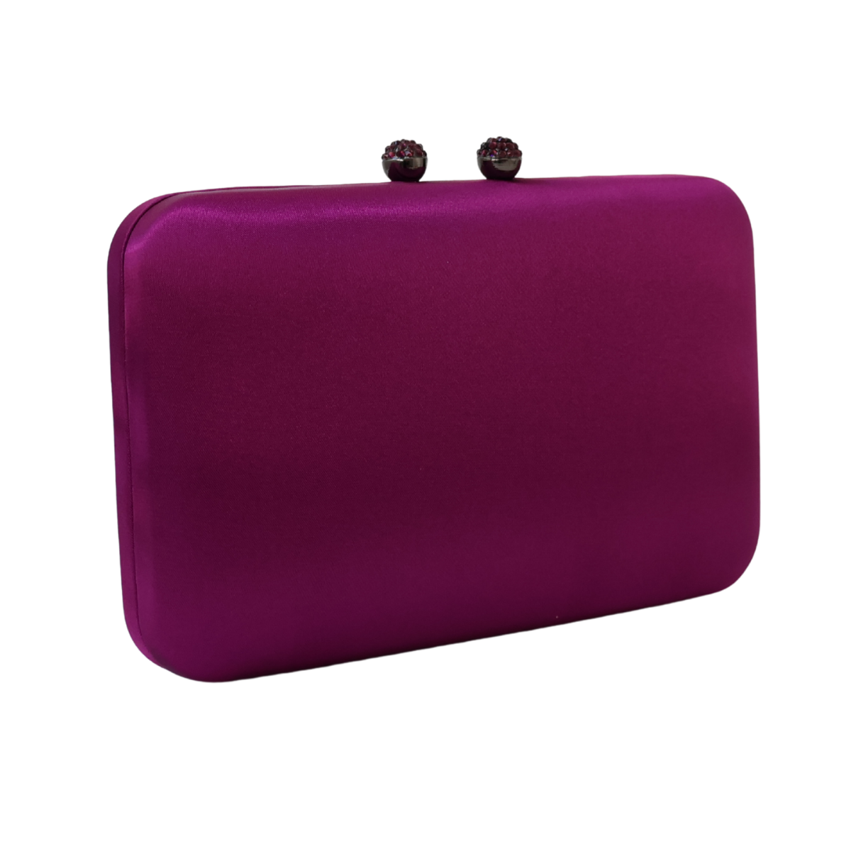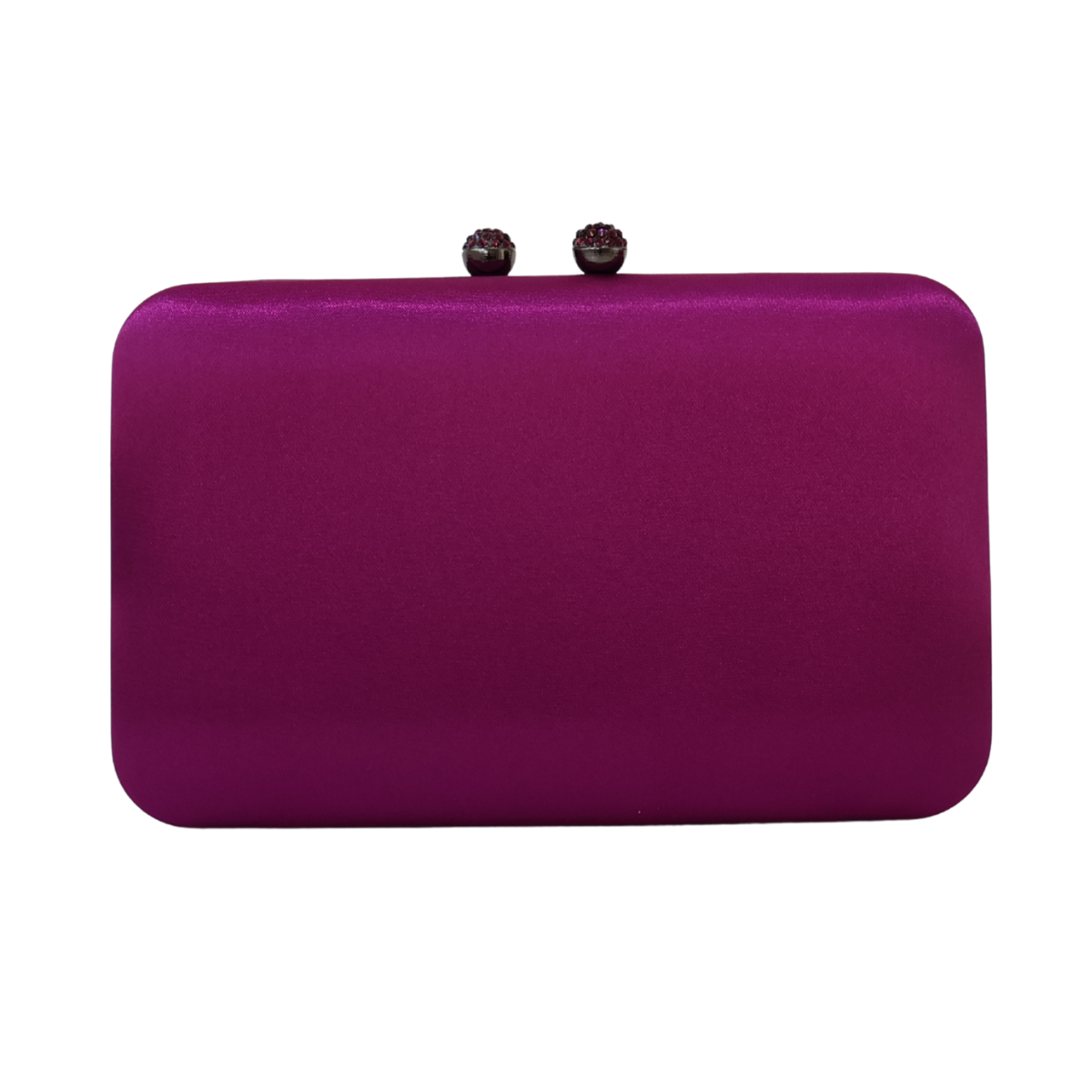 Bolsa de festa clutch de formato retangular, bordas arredondadas, acabamento liso, fecho magnético, interior forrado. Traz alça transversal removível.