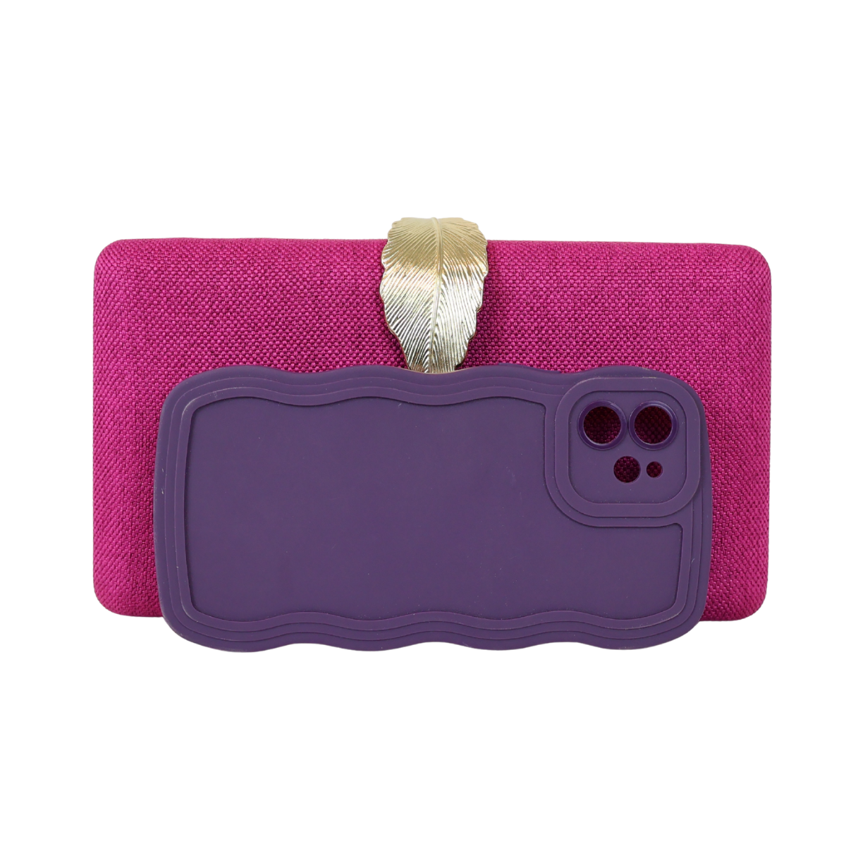 Bolsa Clutch Festa Fecho de Folha Fúcsia
