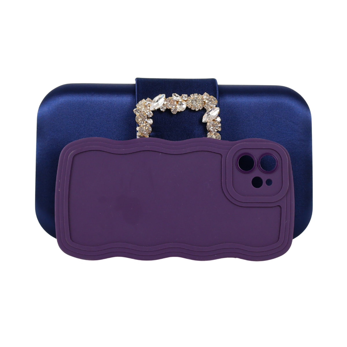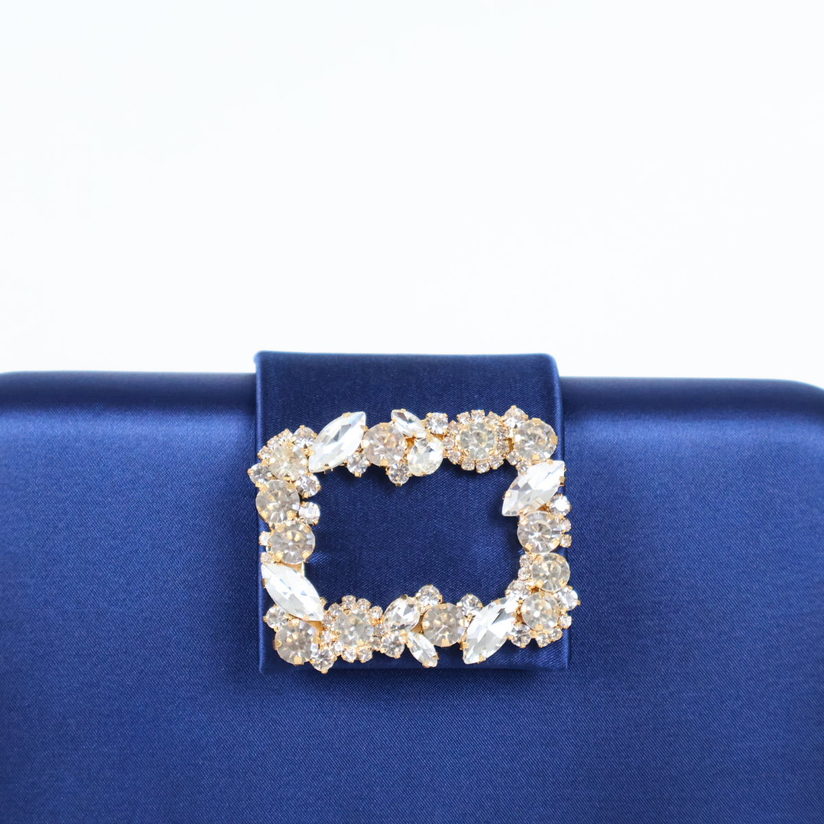 Bolsa Clutch Festa Cetim e Fecho de Pedraria Azul Marinho