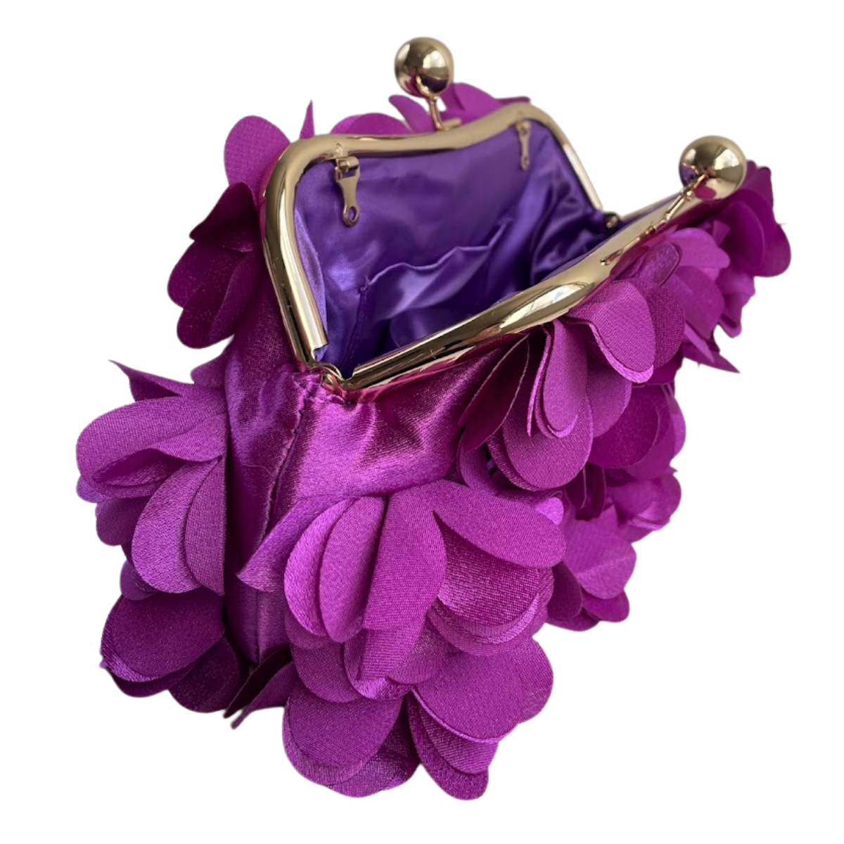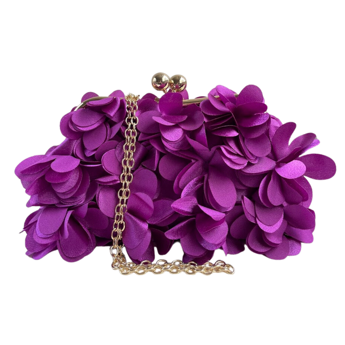Bolsa festa clutch em flores pendentes, textura macia, acabamento costurado, fecho de encaixe, interior forrado. Traz alça transversal removível.